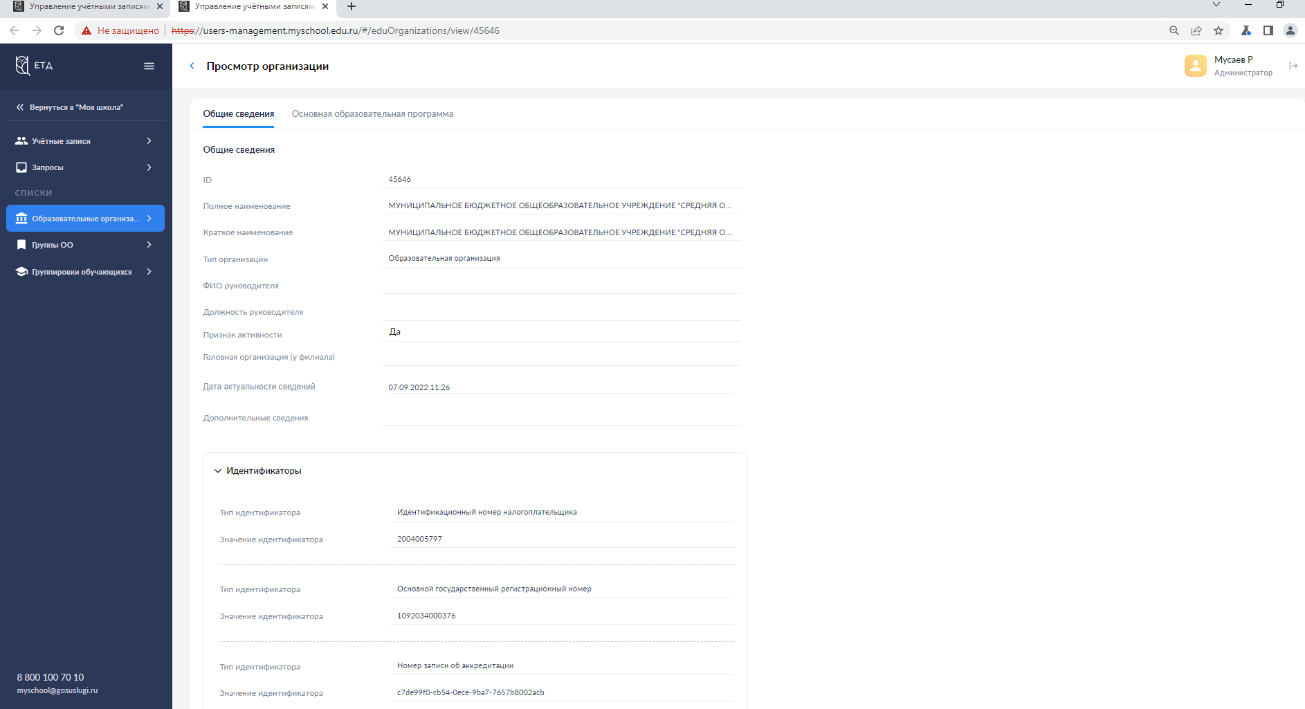образовательных учреждениях