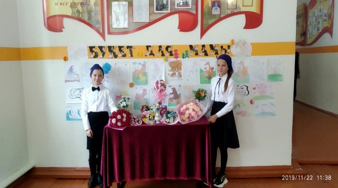 23.11.2019В школьной библиотеке проведена выставка книг и фотографий «Самая прекрасная из женщин», посвященная матери. Библиотекарь Цыкмаева Х.А. оформила свой стенд фотографиями известных матерей и матерей учащихся школы.