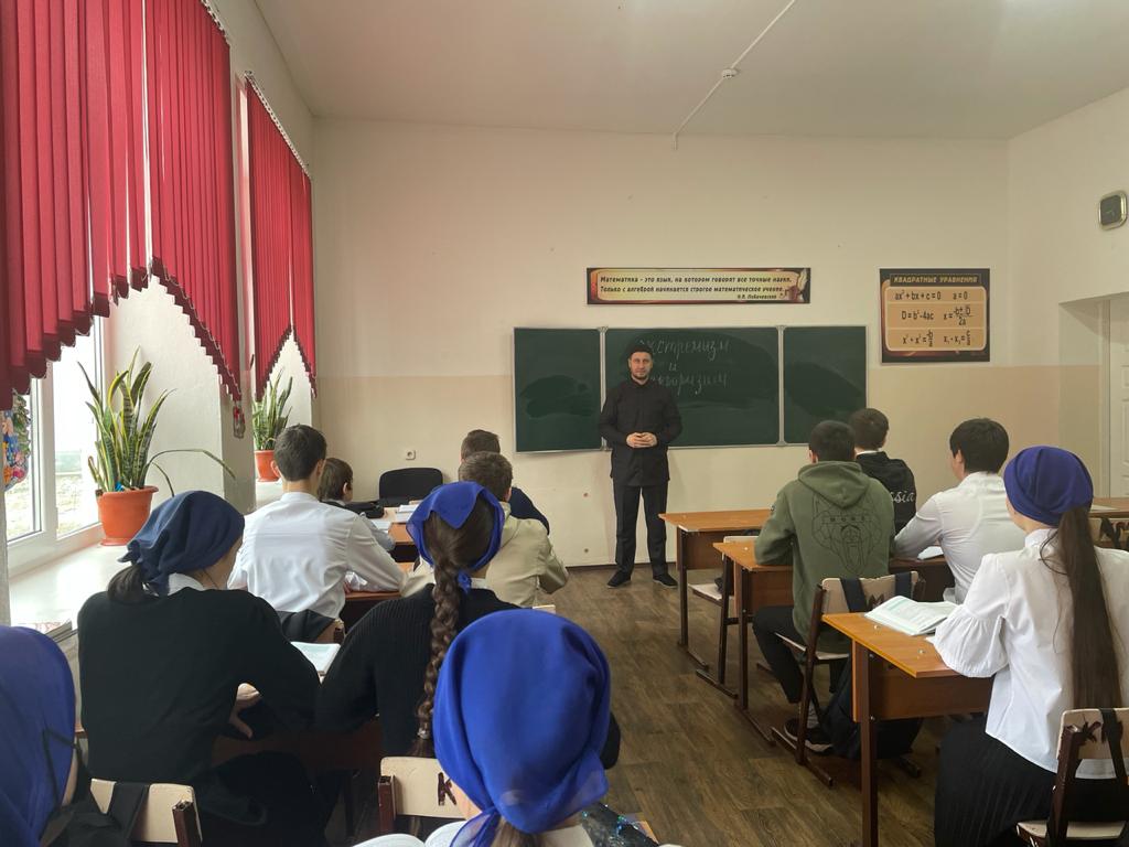 Педагогом по ДНВ Устарханова М.А. была проведена беседа по духовно-нравственному воспитанию молодёжи, направленная на формирование негативного отношения к незаконному потреблению наркотических средств