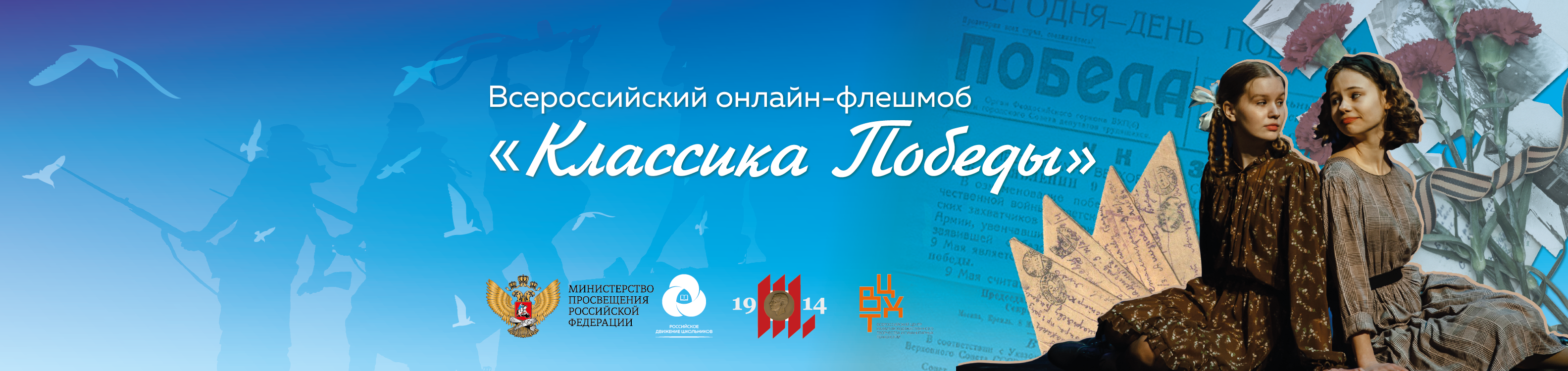 11.05.2022Всероссийский флешмоб «Классика Победы» проходит в рамках Всероссийского проекта «Школьная классика», организаторами которой являются Российское движение школьников, Театральный институт имени Бориса Щукина при Государственном академическом театре имени Евгения Вахтангова и Всероссийский центр развития художественного творчества и гуманитарных технологий.