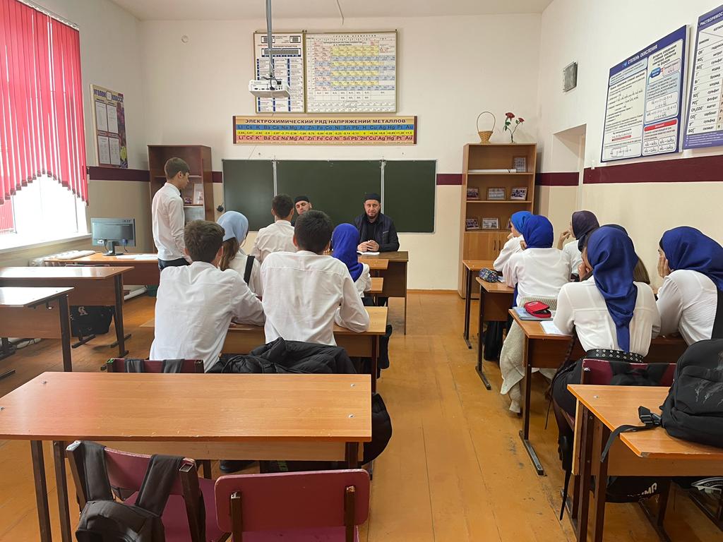 17.05.202217.05.2022г. В МБОУ "СОШ № 2 с.Кулары" в рамках реализации Единой Концепции духовно-нравственного воспитания и развития подрастающего поколения Чеченской Республики, был проведен конкурс по Фикху "Намаз священный долг мусульманина" среди учащиеся 5-11 классов. По итогам конкурса определили победителя - ученик 10 класса Берсанов Аюб В.