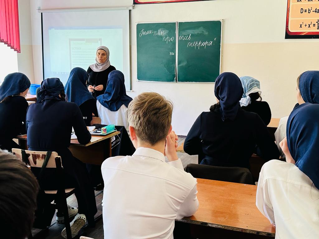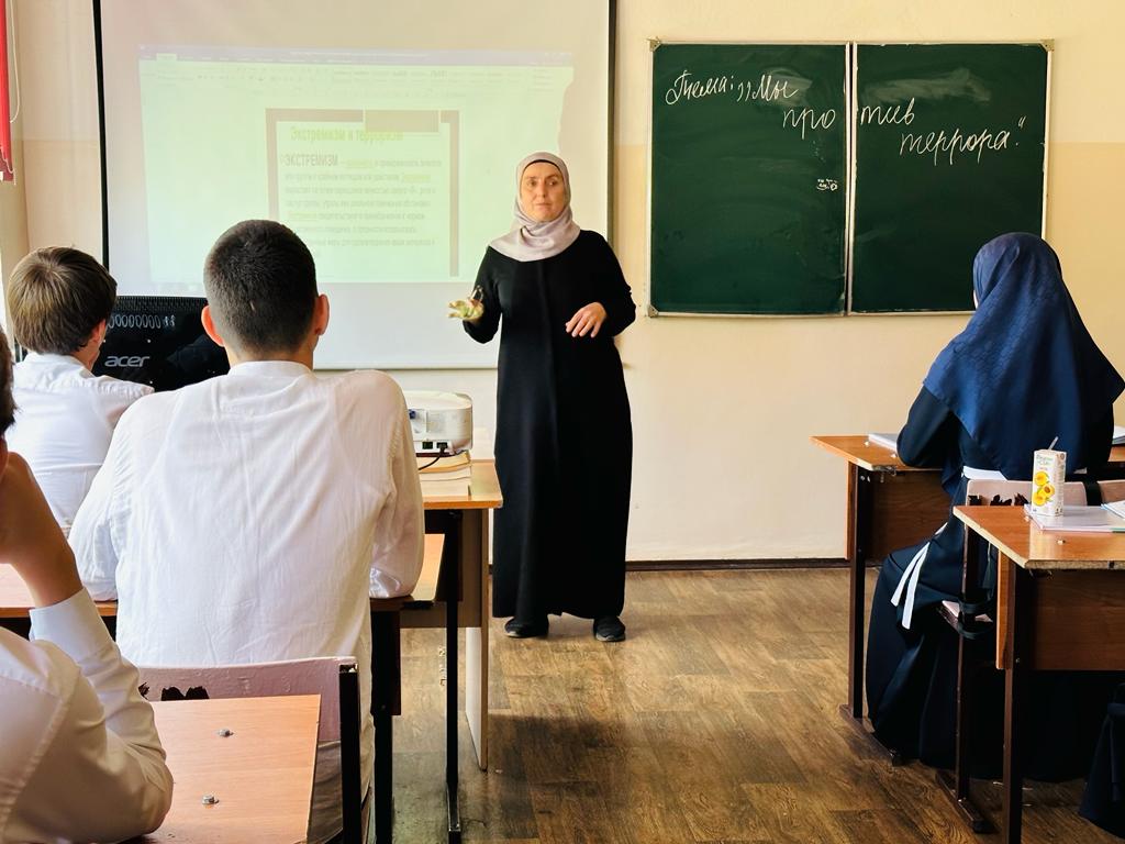 14.10.2022В МБОУ «СОШ №2 с. Кулары» с 11 по 14 октября Устархановым М.А. педагогом по ДНВ и учителем ОДНКНР Гишлеркаевой Х.А были проведены беседы в целях предотвращения вовлечения несовершеннолетних в террористическую и экстремистскую деятельность, недопущения распространения радикальной идеологии в молодежной среде, устранение условий и причин, способствующих совершению преступлений несовершеннолетними, в том числе экстремистской направленности и террористического характера.
