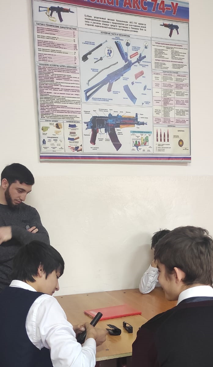 Патриотический отряд «Юная армия» МБОУ «СОШ №2 с. Кулары» совместно с педагогом-организатором и учителем физической культуры подготовили и провели плановое внеурочное мероприятие «отработка навыков (сборка-разработка оружия), под строгим наблюдение.