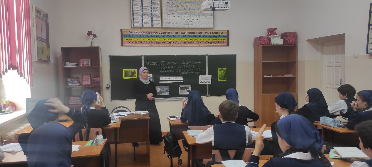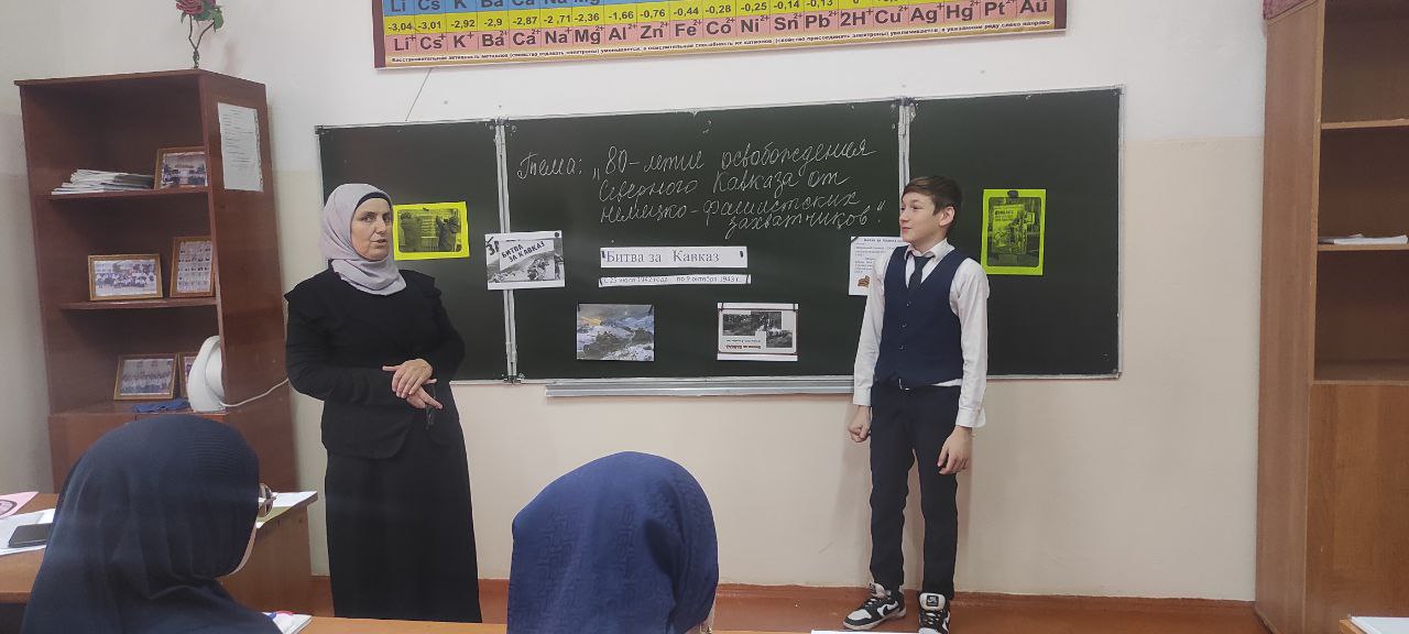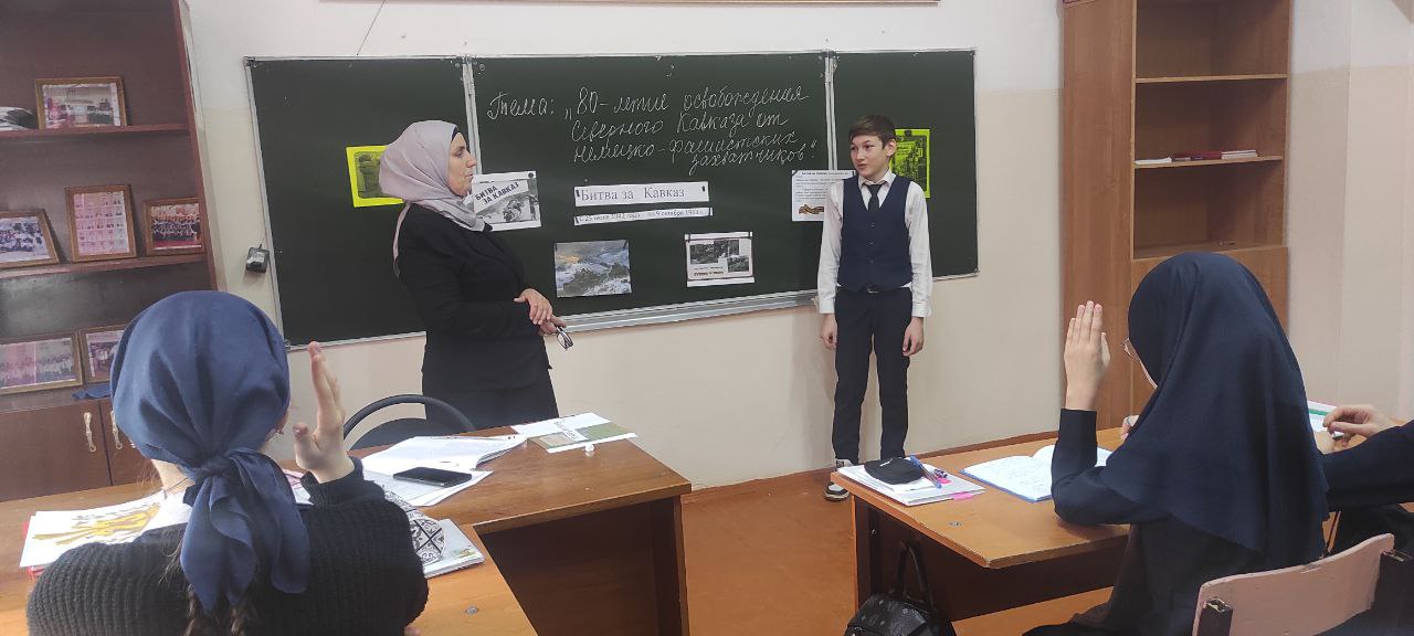 На классном часе ученики узнали исторические факты о том, как проходила битва за Северный Кавказ, услышали рассказы о подвигах героев и патриотизме тех времен.