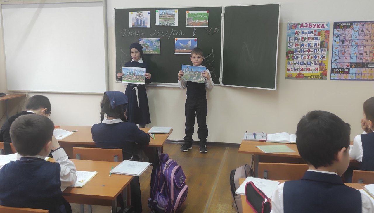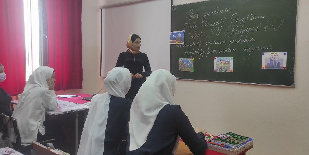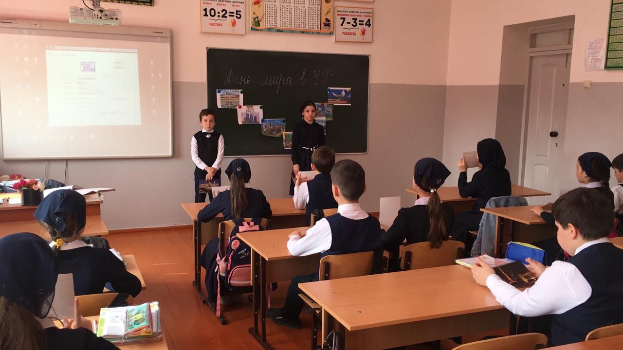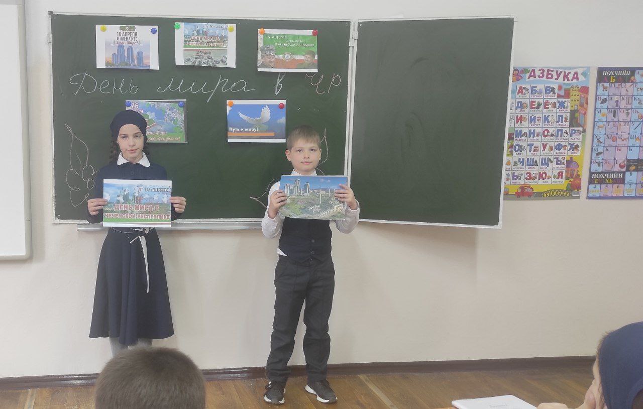 В ходе классных часов в 3 и 4 классах, учащиеся познакомились с историей восстановления мира на территории Чеченской Республики. В свою очередь, ученики старших классов, на уроке мужества, обсудили главу Чеченской Республики, героя Российской Федерации Рамзана Кадырова, который стал инициатором отмены контртеррористической операции.
