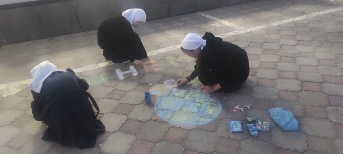 Рисунки на асфальте среди учащихся 7-8 классов на день молодежи.