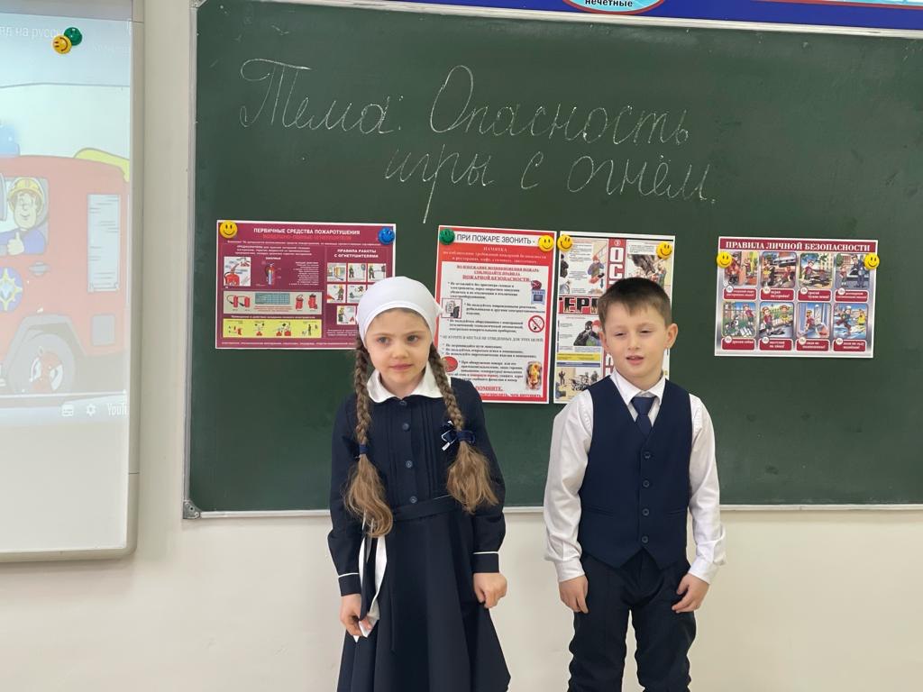 29.01.202429.01.2024г. в МБОУ "СОШ №2 с.Кулары" в начальных классах проведены пятиминутки на тему Опасность игры с огнем" Цель пятиминутки: Закрепить знания детей о пожарной безопасности;Познакомить с профессией пожарного, как одной из мужественных и героических;Показать как положительную, так и отрицательную роль огня в жизни человека, прививать навыки осторожного обращения с огнем;Воспитание, гордости за людей профессии пожарного;Воспитывать лучшие нравственные качества: мужество, находчивость, самоотверженность, скромность.Прививать навыки осторожного обращения с огнем, воспитывать чувство ответственности, навыки безопасного поведения.